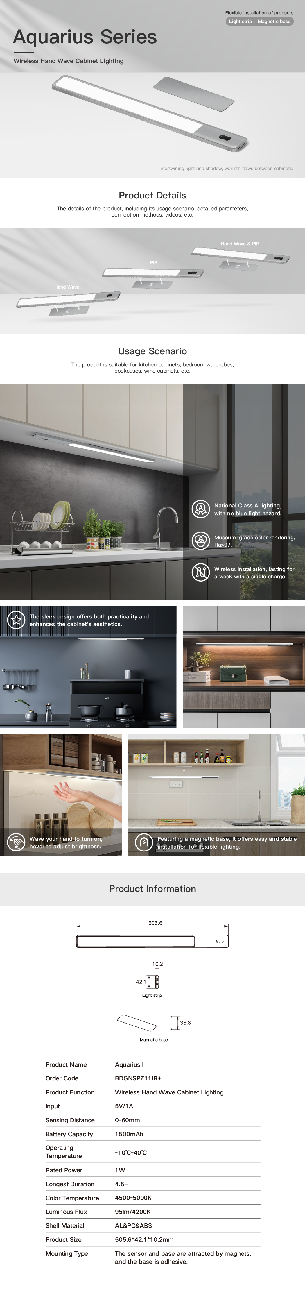 Hand Wave Sensor Led Smart Cabinet Light Tube Hand Sweep Induction Kitchen Lamp Under Cabinet Led Light