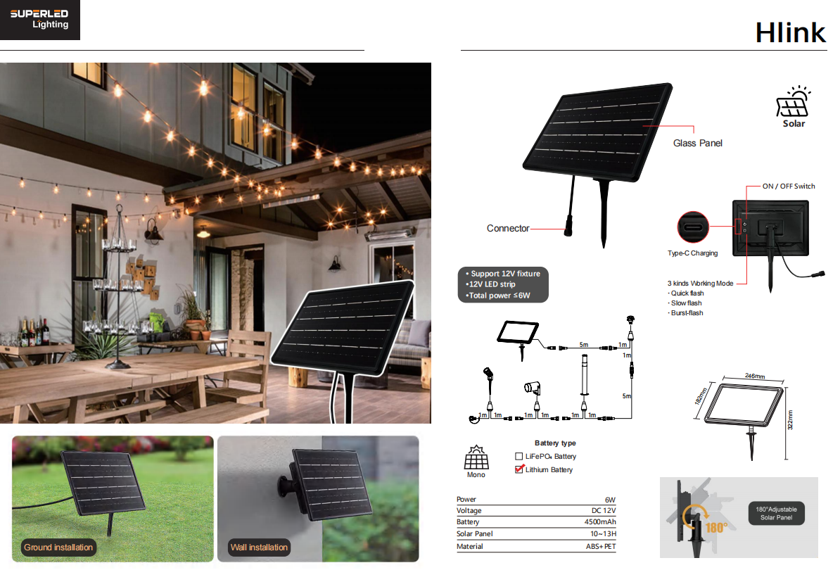 Hlink Solar Panel 180° Adjustable