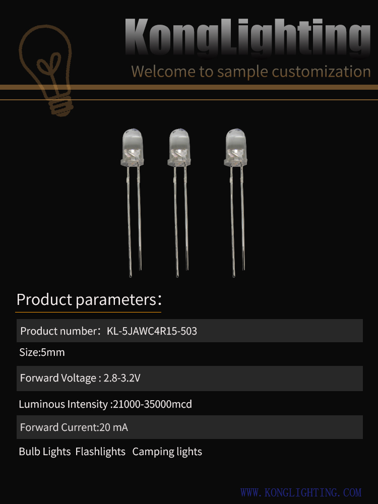5mm Round LED Lamp in Long-lead White Color with Water Transparent Lens