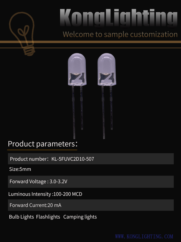 5MM Round Head Boundless Colorless Transparent Purple Short Foot LED