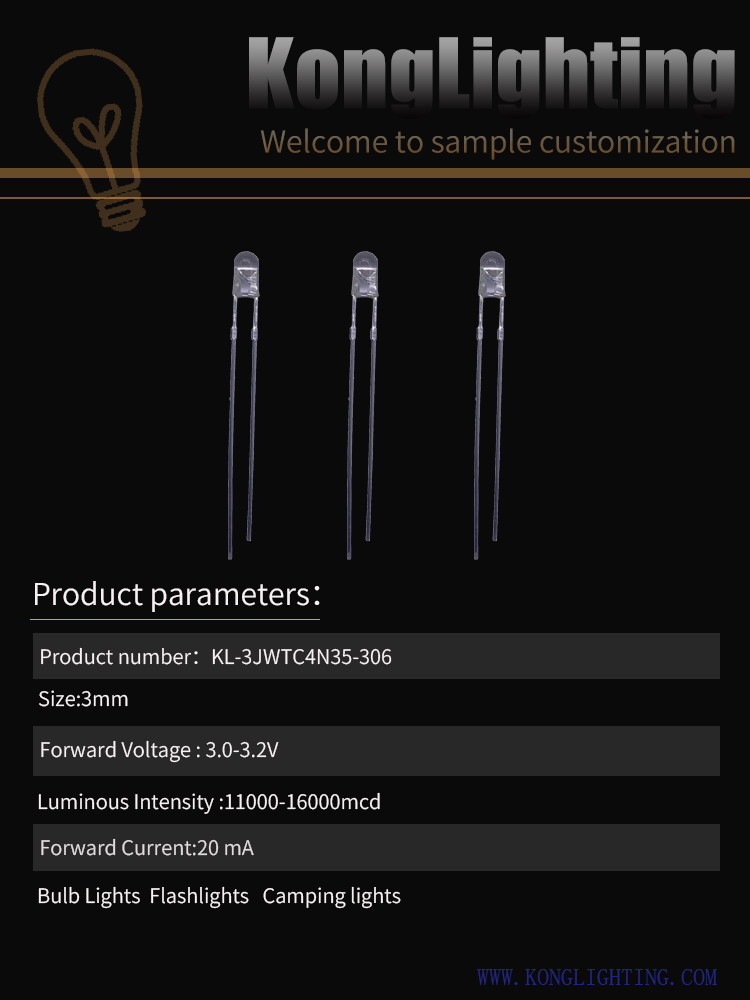 3MM Round Head Boundless Colorless Transparent White Light Long Foot LED