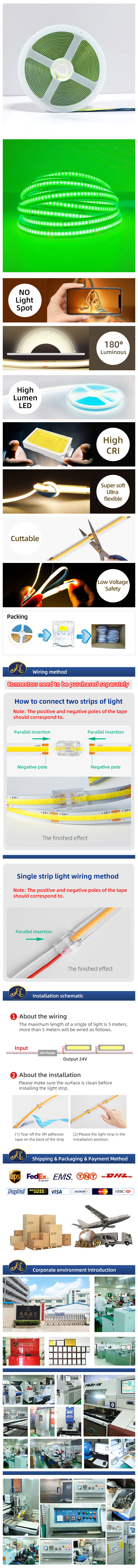 Flexible COB green light strip 24V 480chips/m 12W/m 10mm FPC 5m/roll COB LED Strip Light COB Light strip | 燈飾 | 節日及裝飾照明