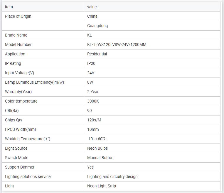 KL-T2WS120LV8W-24V/1200MM