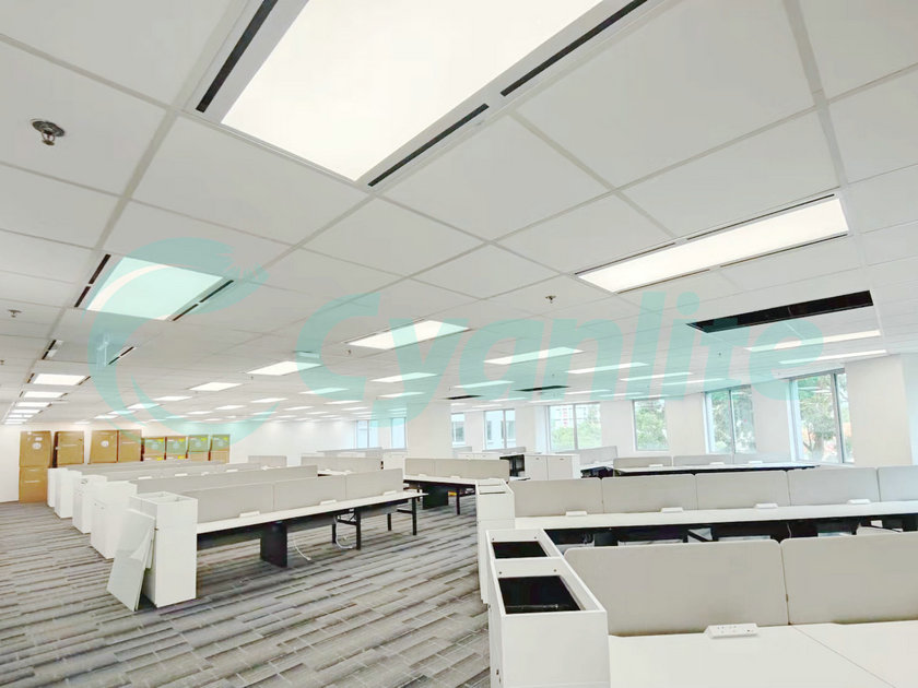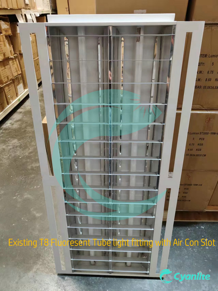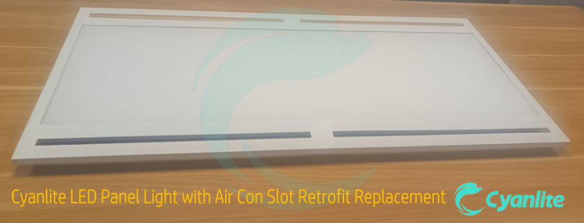 This customer used about 500pcs traditional T8 fluorescent tube fittings with air con slot/ air vents in their building, they wanted to replaced all of those luminaires for energy saving, improving lux level and reducing the maintenance cost. So Cyanlite customized this project for them, make the perfect retrofit replacement with LED panel light with air vents, in the same luminaire dimension, the same air vent and air return capacity specification, better light efficiency, longer life and better maintenance cost.