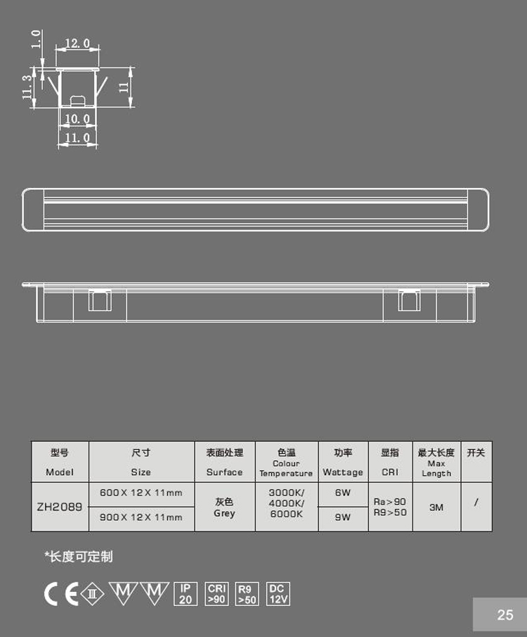 8.Color temperature: 3000K/ 4000K/ 6000K