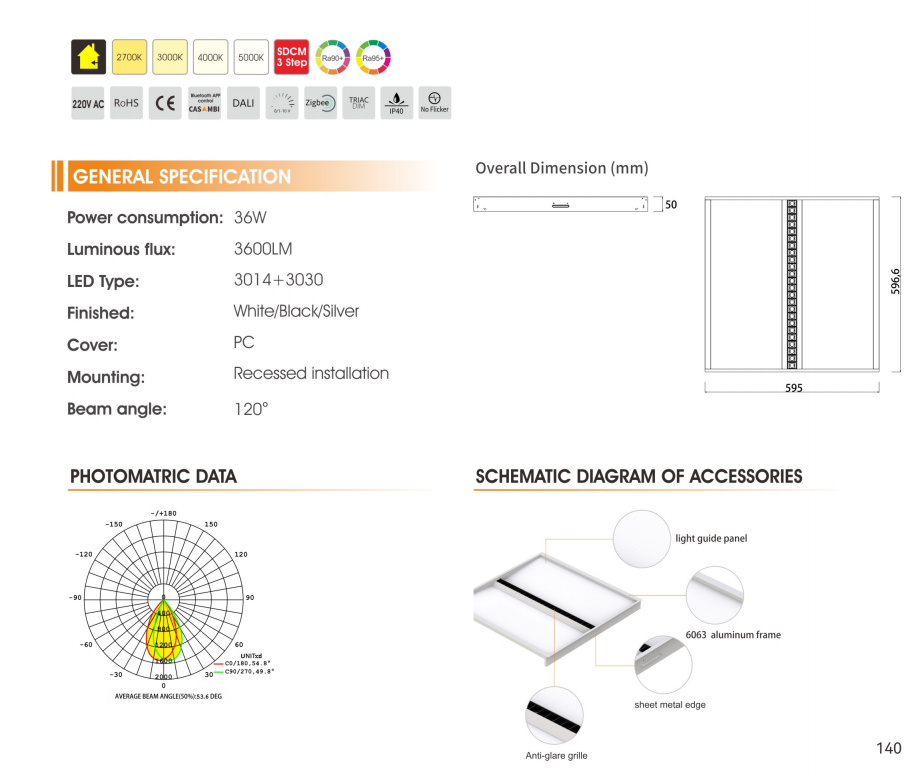 CCT : 2700K/3000K/4000K/5000K/6000K/RGBW