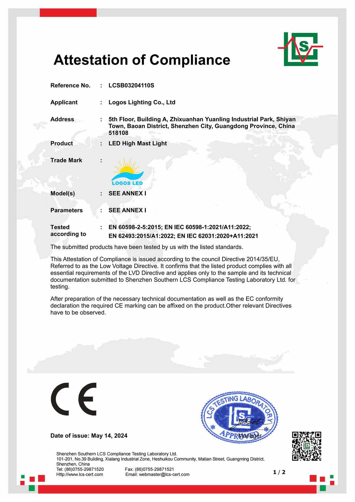 CE, CB, RoHS