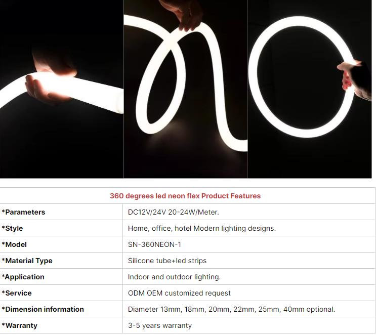 Indoor Ambient Decor360 Degrees Round 22mm 25mm LED Neon Rope Light 24V Silicone tube led Neon flex Strip | 燈飾 | 節日及裝飾照明