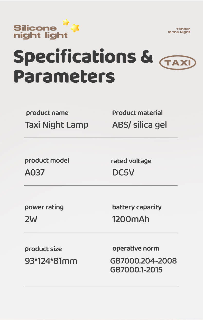 Taxi Soft Silicone Night Light Led USB Rechargeable Pat Control Change Color Lamp Best Gift for Children | 燈飾 | 室內照明