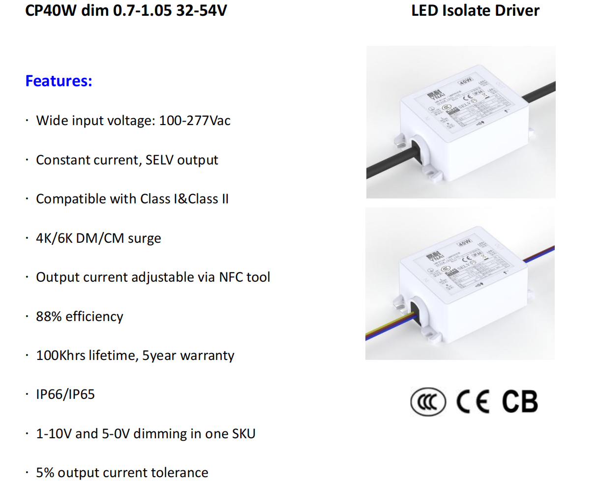 Led Driver 40W Output 66-84V 0-10v Dim Street Lighting Driver 5years Warranty CE\CB led driver