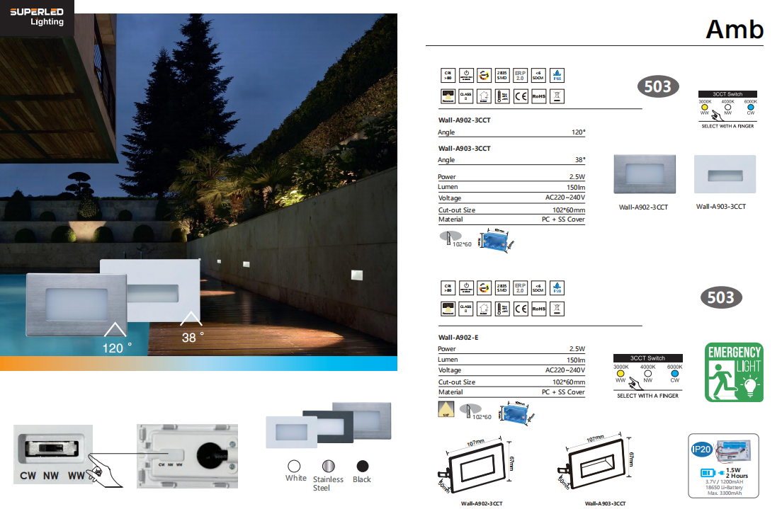 Amb Wall light with Emergency 3CCT