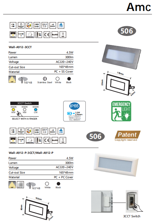 Amc Wall Light 3CCT & IP65 with Emergency