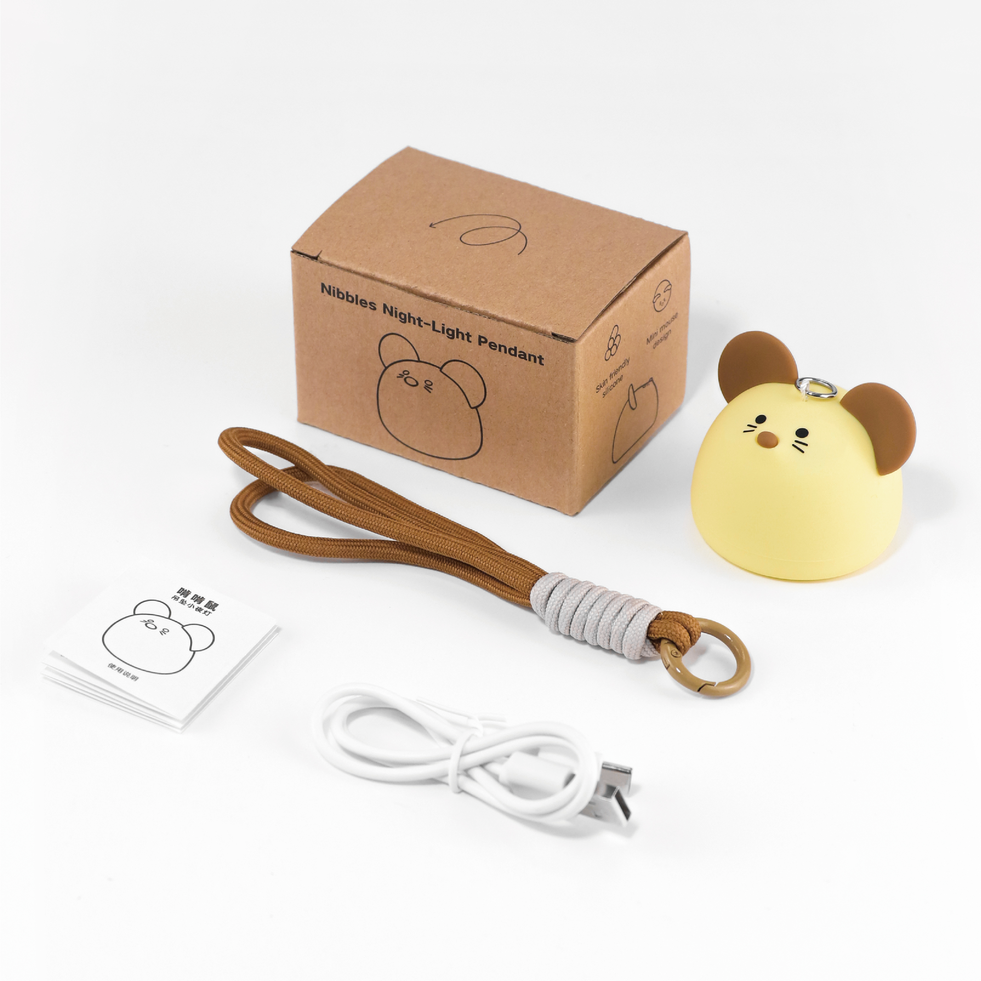 Mini mouse silicone lamp with rope rechargeable Silicone Night light with hanging ornament