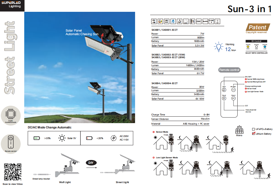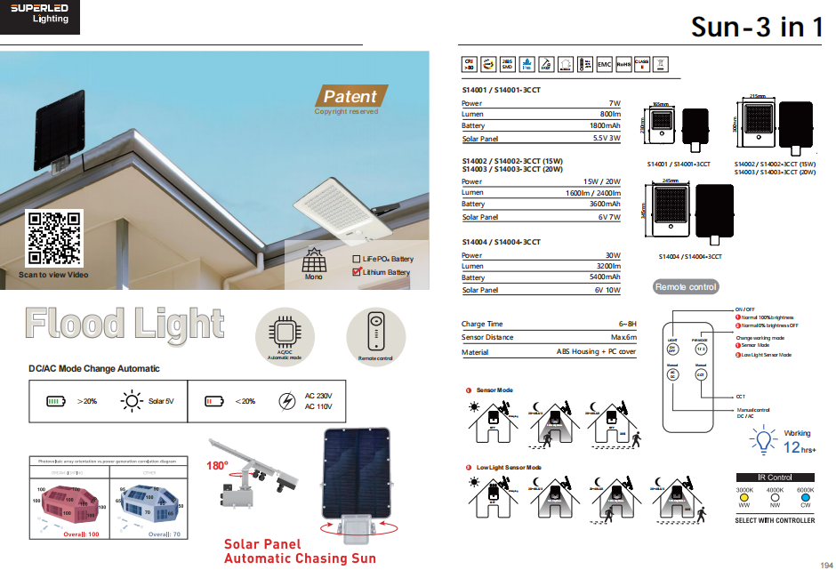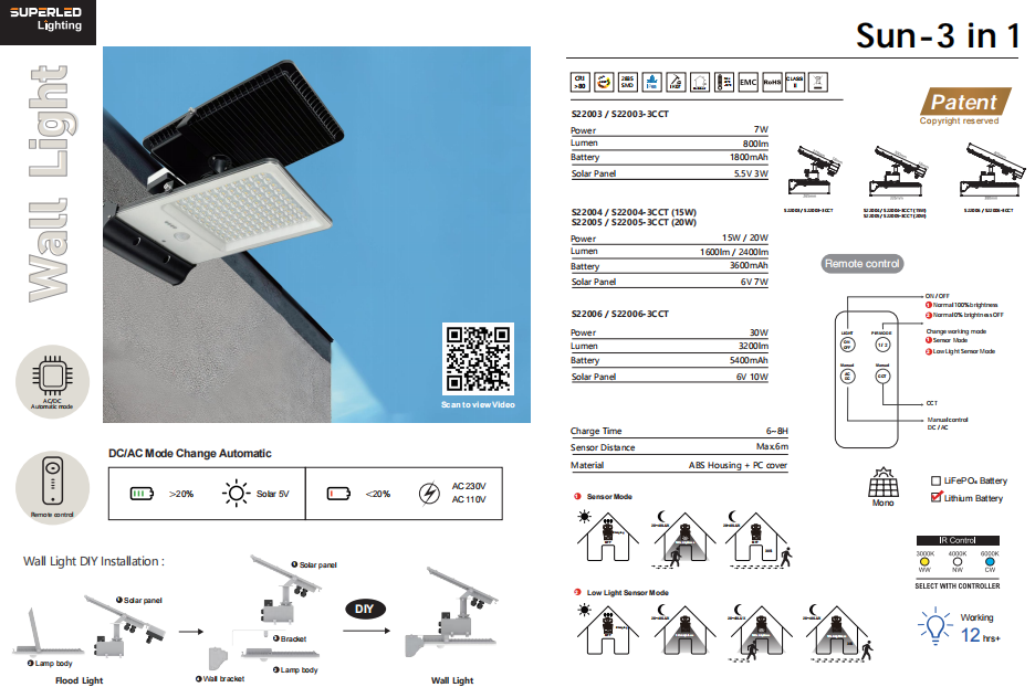 Sun-3 in 1 Solar Panel - Fiood Light & Wall Light & Street Light