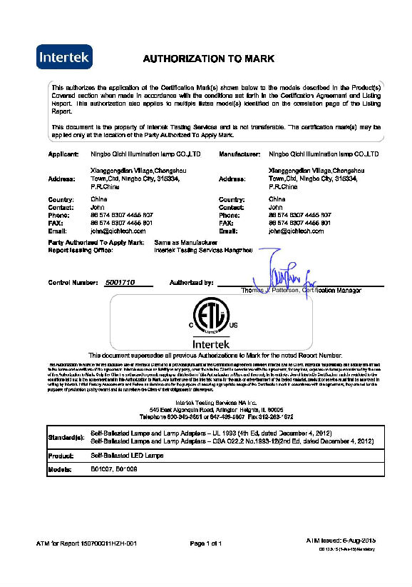 Ningbo Qichi Illumination Lamp Co.,Ltd.