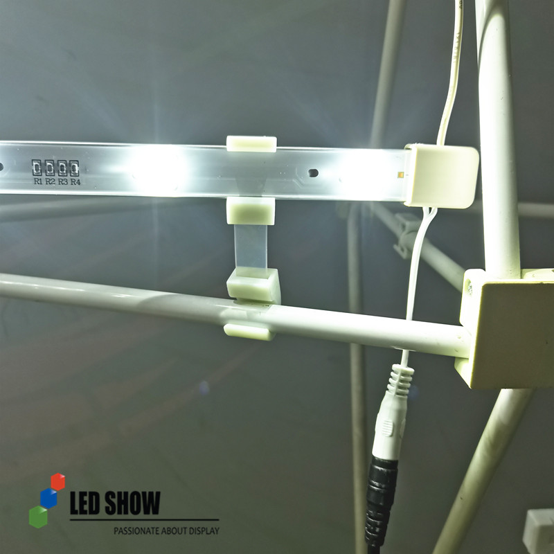 Lighting in advertising is installed as below, max 3 rolls LED curtain lights connected with one slim power supply.