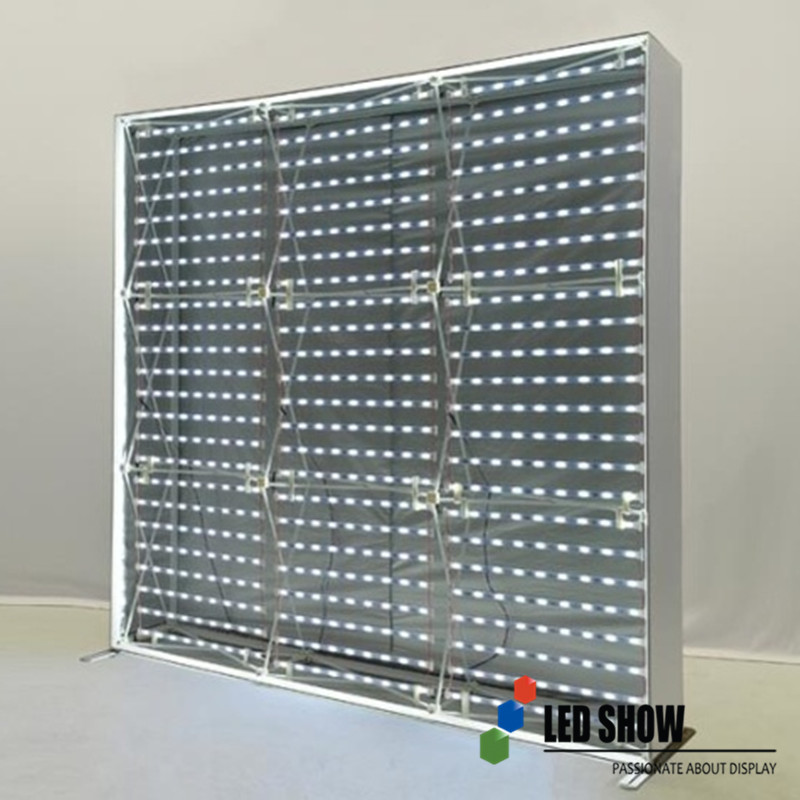 The customized hooks are very convenient for fixing the exhibition lighting on the SEG Systems Backlit Popup Displays.