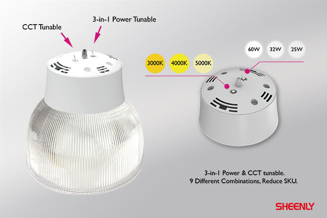 SL-BAY-60W-XW-CT | 60W/ 32W/ 25W Tunable | 3000/4000/ 5000K Tunable | 7200/3840/ 3000lm Adjustable | 75° | Φ310*272 |