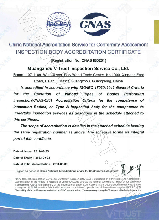 CNAS17020, ISO9000, IFIA, AAFA, ASI