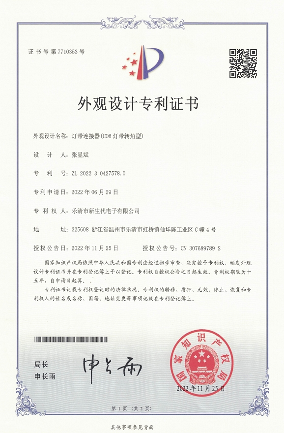 外觀設計專利證書