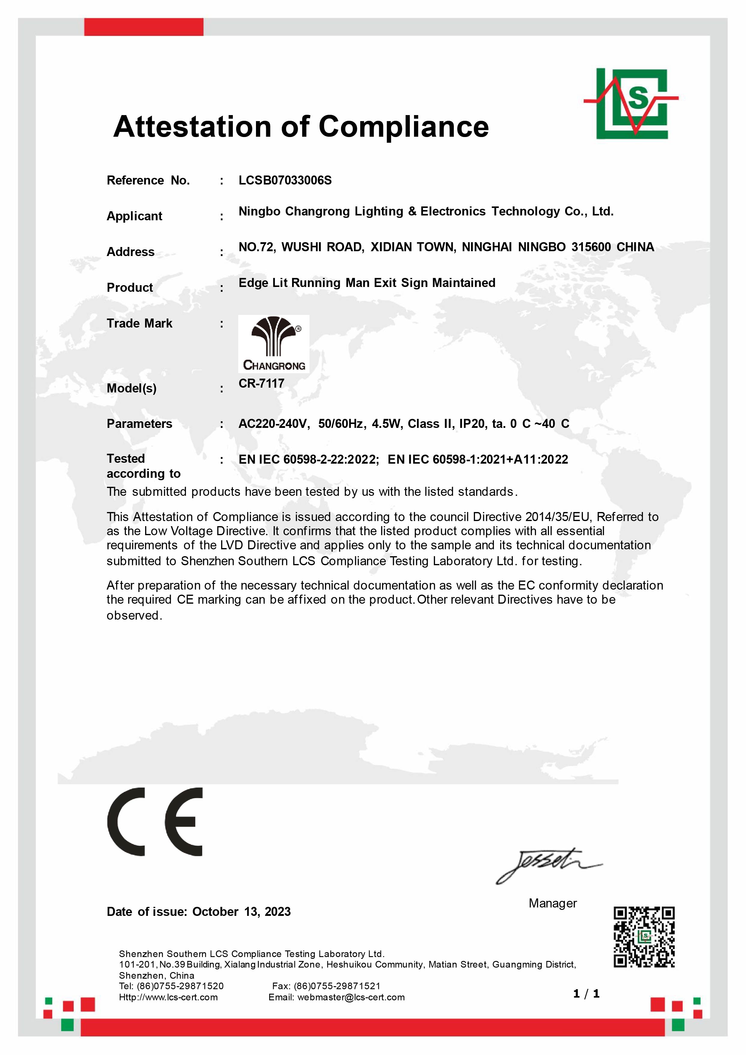 EN 60598-2-22:2014+A1:2020; EN IEC 60598-1:2021;