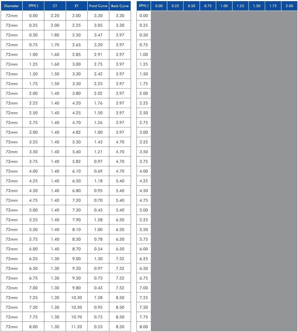 SPH: 0.00~-8.00 CYL: 0.00~-2.00