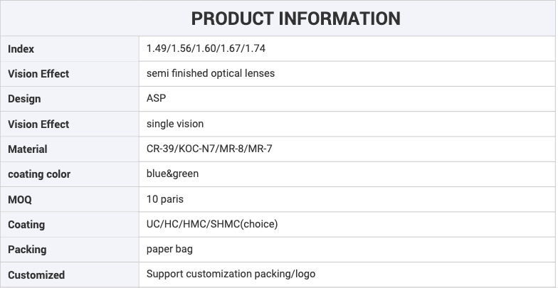 We have five years of experience in exporting lenses to 35 countries. In recent years , with advanced technology ability, high quality standard, mature products and thorough service system, we have achieved rapid development. We are able to produce regular items as 1499, 156, 1.60, 1.67, and1.74 index, and successively created Bifocal, Photochromic, Polarized and Progressive lenses.