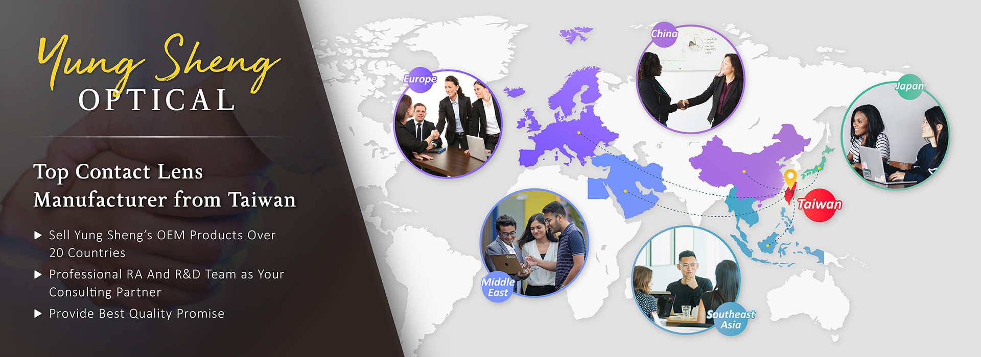 Major business is manufacturing and selling of soft contact lens and lens care products. With its innovative R&D team, advanced manufacturing facilities and professional marketing and sales group, Yung Sheng has successfully certificated by ISO 9001, ISO 13485, Japan FMA (Foreign Manufacturer Accreditation), European CE mark, Taiwan GMP (Good Manufacturing Practice), Korea GMP and Malaysia GMP, etc. to expand its global market.