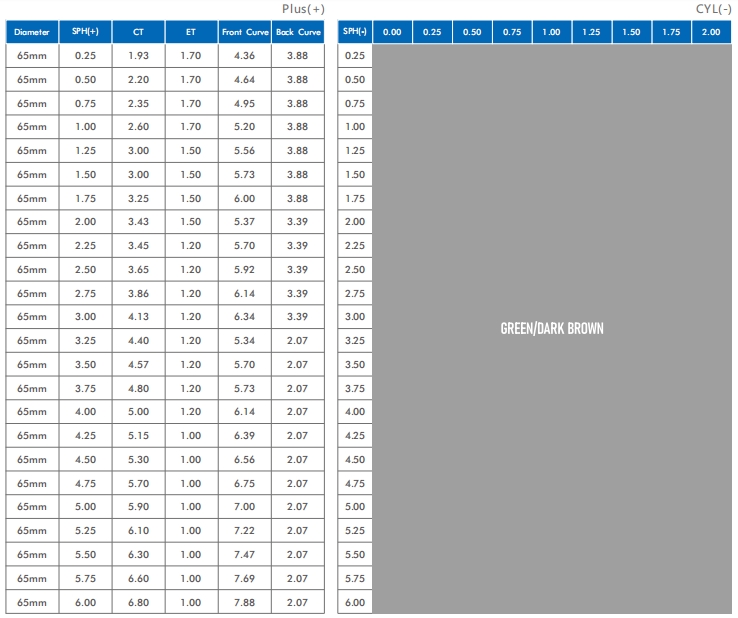 1.56 SP Finish Single Vision Photochromic Lens In Mass (Green/Dark Brown) | 1.56 | Green/Dark Brown | 72/65mm | Photochromic Oligomer |
