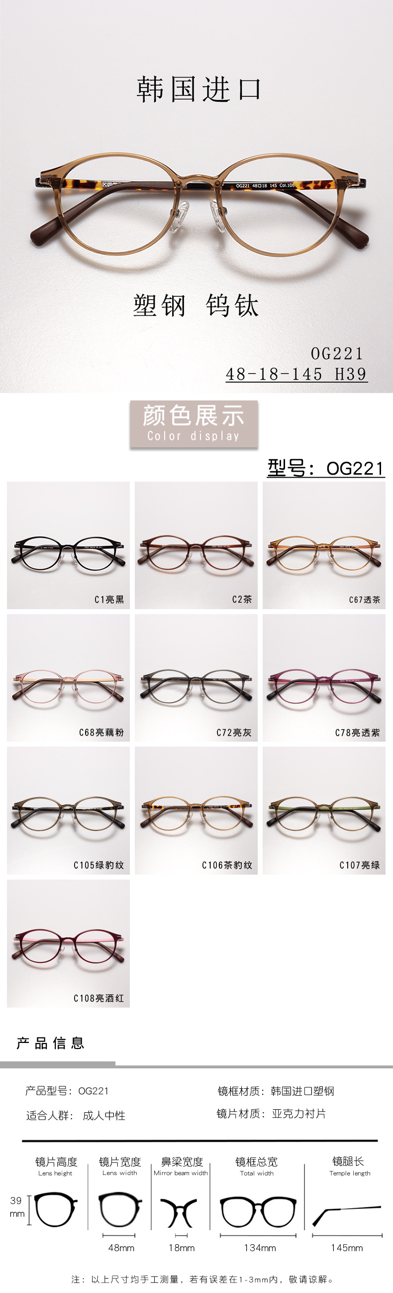 ULTEM FRAMES Made in Korea Model 221