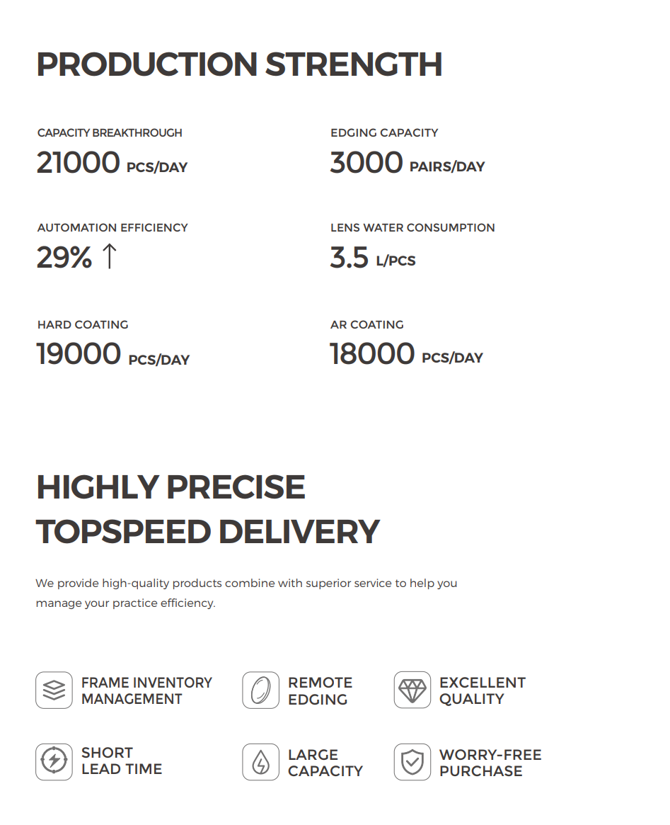 70% of Danyang’s Rx lens shipments come from Wanxin Rx lab while Danyang’s lens shipments account for 50% of global lens market. The efficient production of Wanxin Rx lab ensures that every product reaches consumers’ hands at the fastest speed.