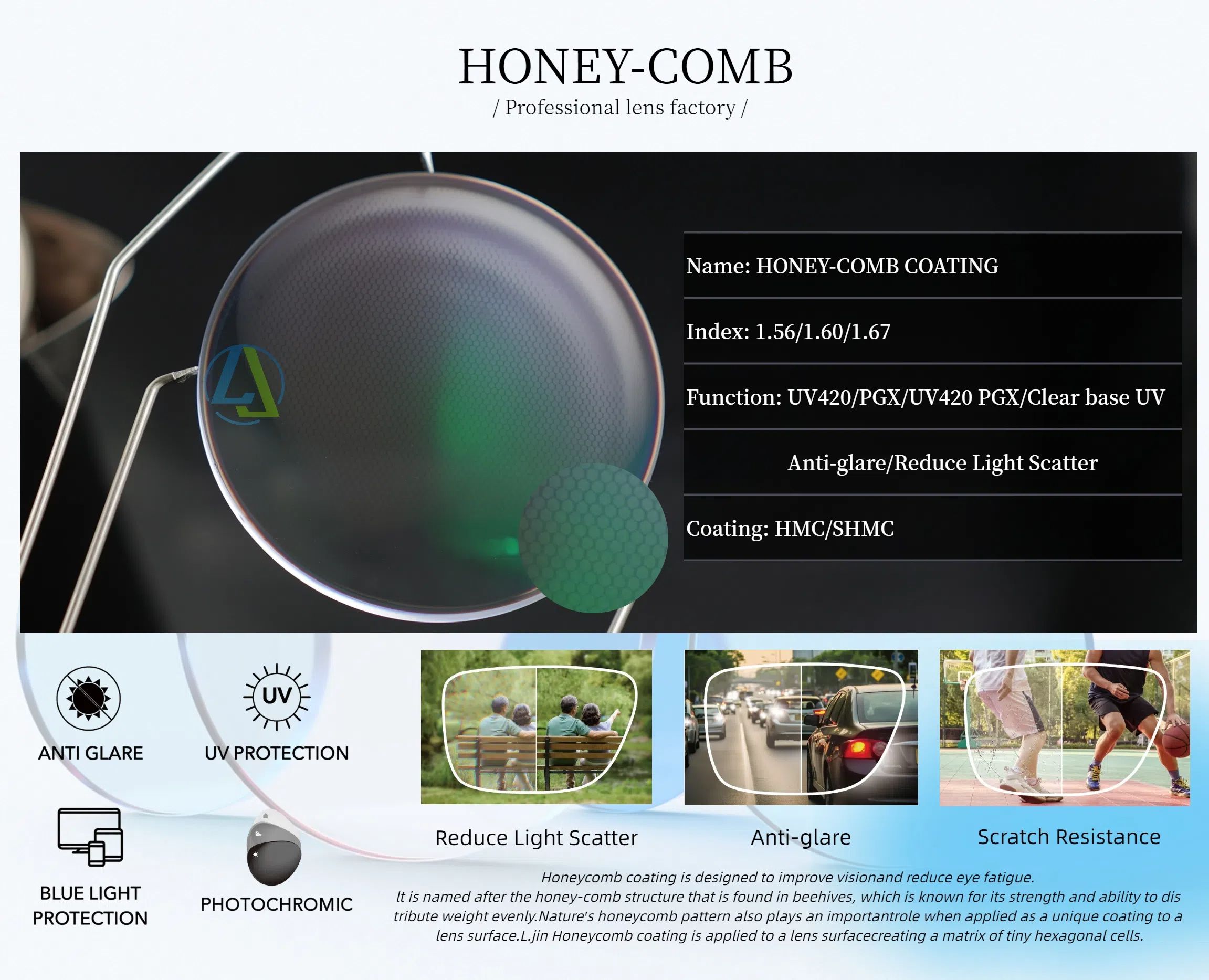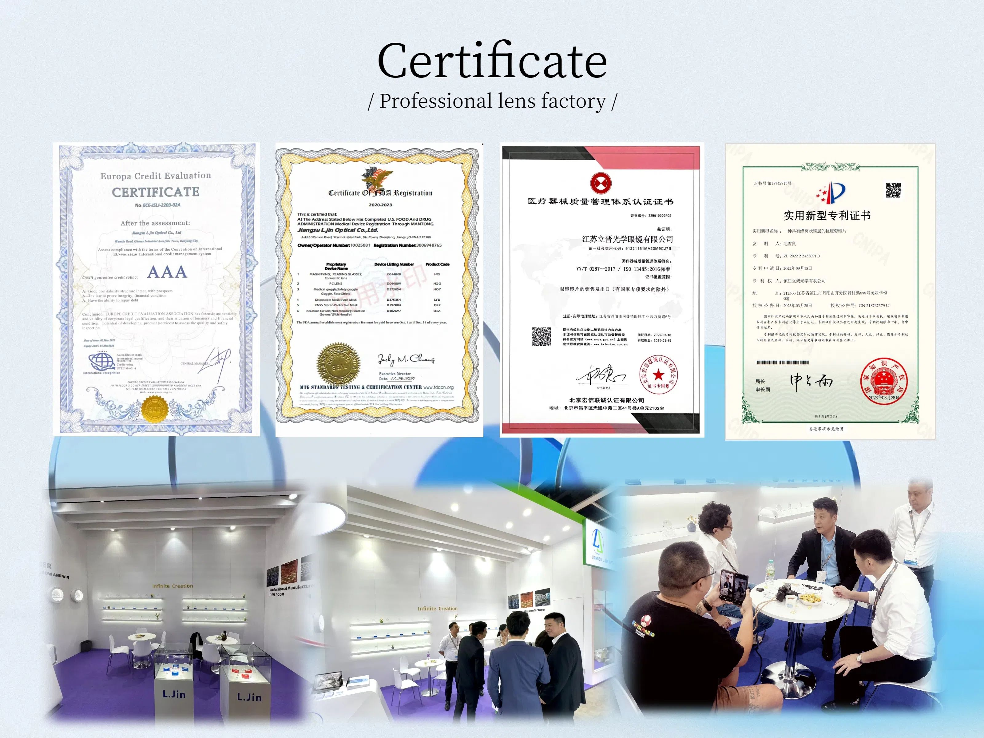 L.jin optical established in 2018 and are a dynamic company, but our whole team has more than 20 years’ experiences in lens industry, which means we are able to provide stable products with mature technology and also give you professional services. When you cooperate with us, we are always your OEM/ODM backup and fully support you to create your own lens brand.We are able to produce regular items as 1.499, 1.56, 1.60, 1.67 ,and1.74 series, and successively created Bifocal, Photochromic, Polarized and Progressive which is function for students.Since establishment, we have continuously new improvementand inventing varied lenses which is suited to future market. Meanwhile we also rely on our own technology and abundant funds to actively carry out "Production, Learning and Research" cooperation with internal and abroad universities and research labs, By means of standard quality. variety and complete customer service system, we develop and serve all our clients who are from domestic or international.