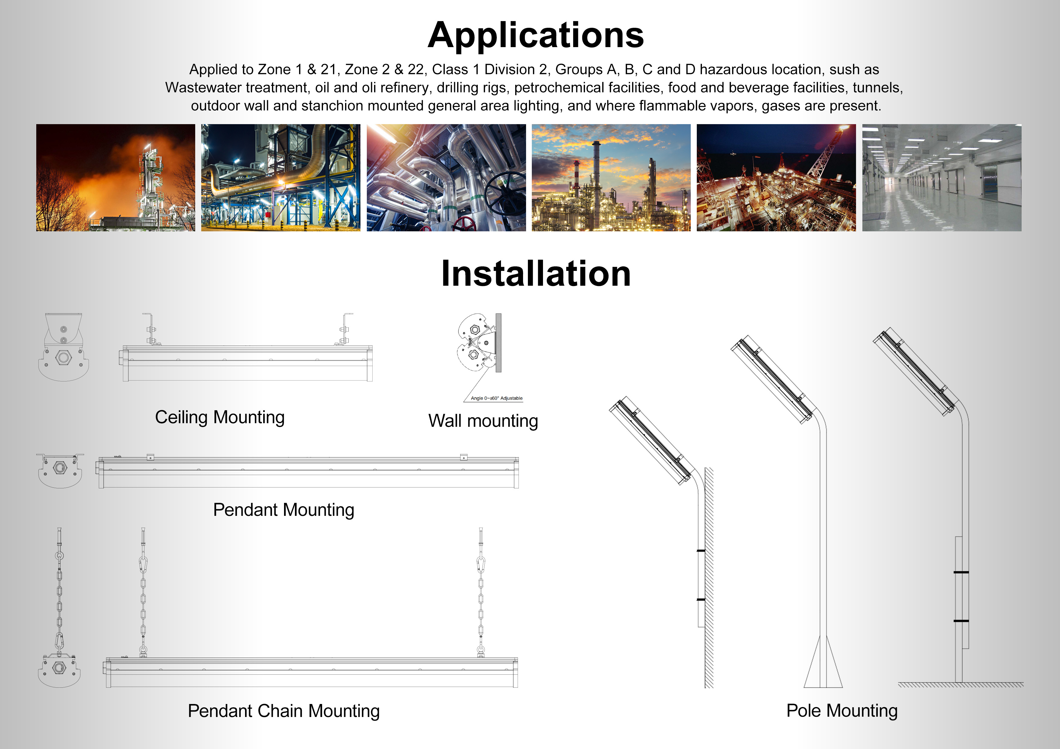 CES-LN-02P 0.6M 1.2M 30~75w Ik08 9600lm UL844 Hazardous Area Explosion Proof Linear Light | Professional Lighting