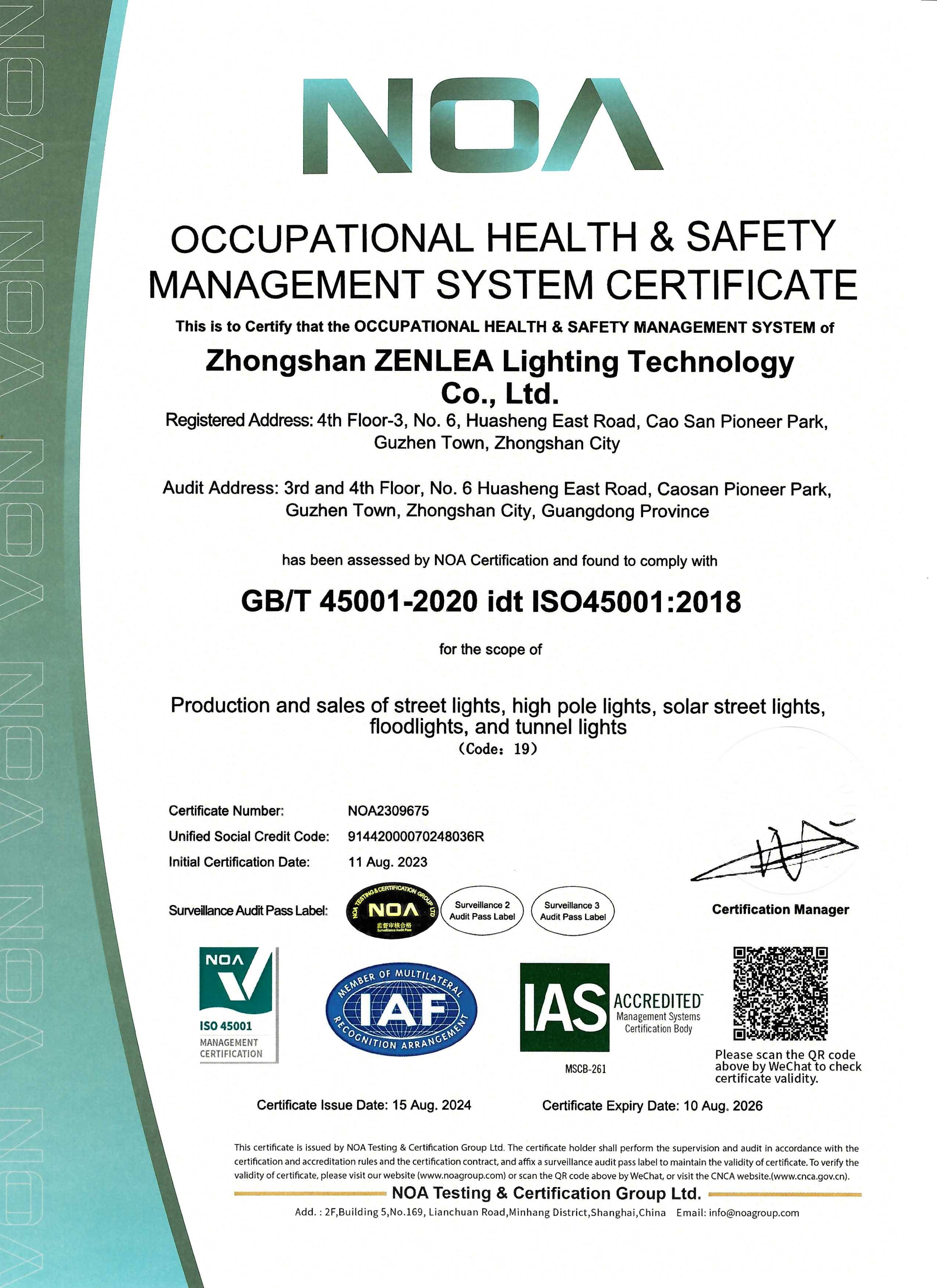 OCCUPATIONAL HEALTH & SAFETYMANAGEMENT SYSTEM CERTIFICATE