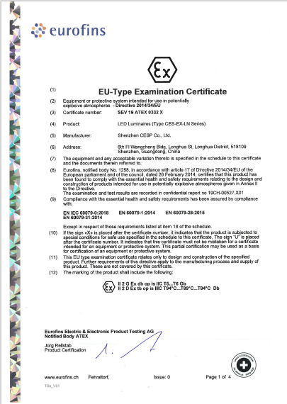 Atex IECEX Certifications: ATEX /IECEx certified, Class I, Division 1 and 2 or Class Ⅱ, Division 1 and 2 or Class Ⅲ, Division 1 and 2 rated certified, these LED explosion proof lights are able to contain sparks that could potentially ignite the flammable and explosive gases in the atmosphere.