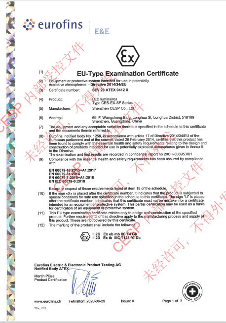 发行机构Eurofins Electric & Electronic Product Testing AG证书类型IEC有效日期2020年6月28日 - 2026年6月29日