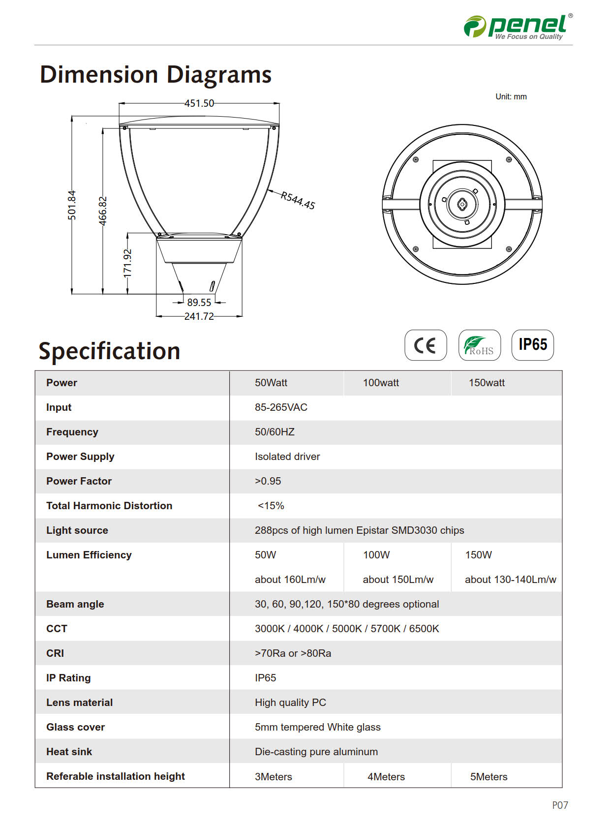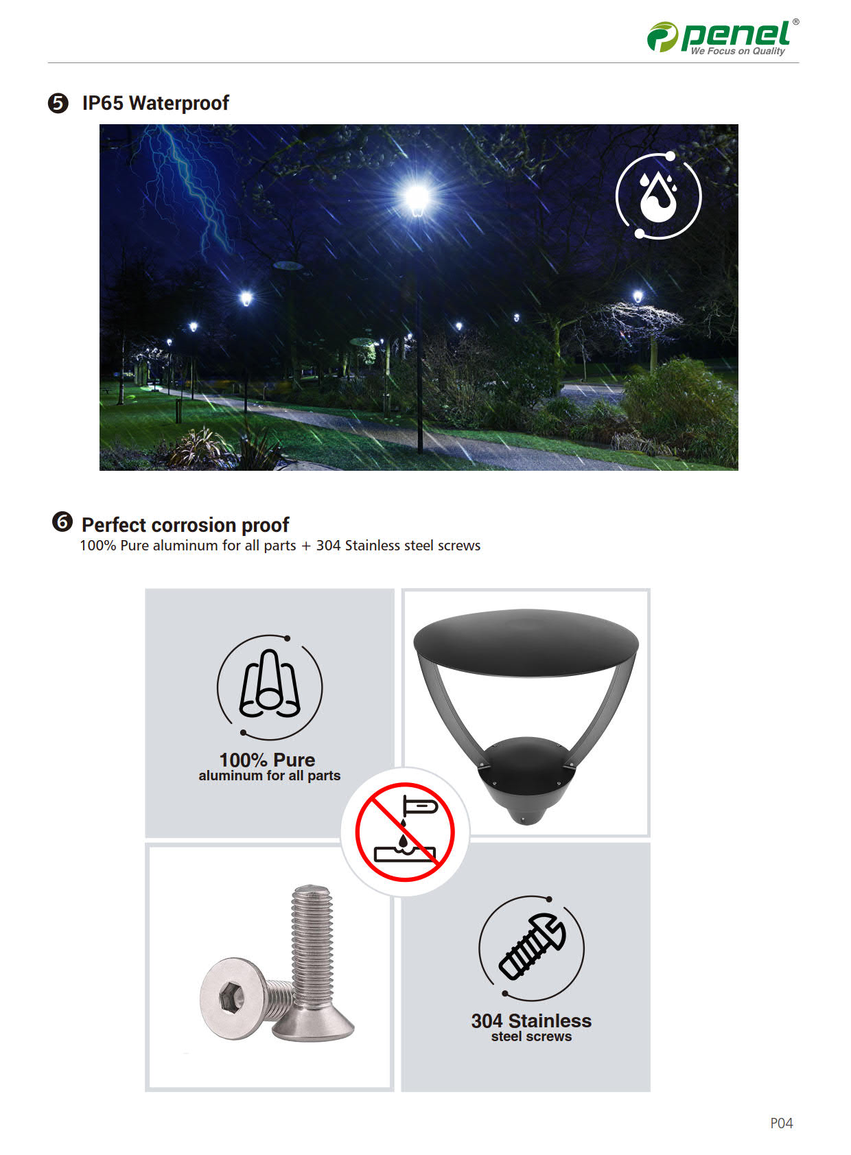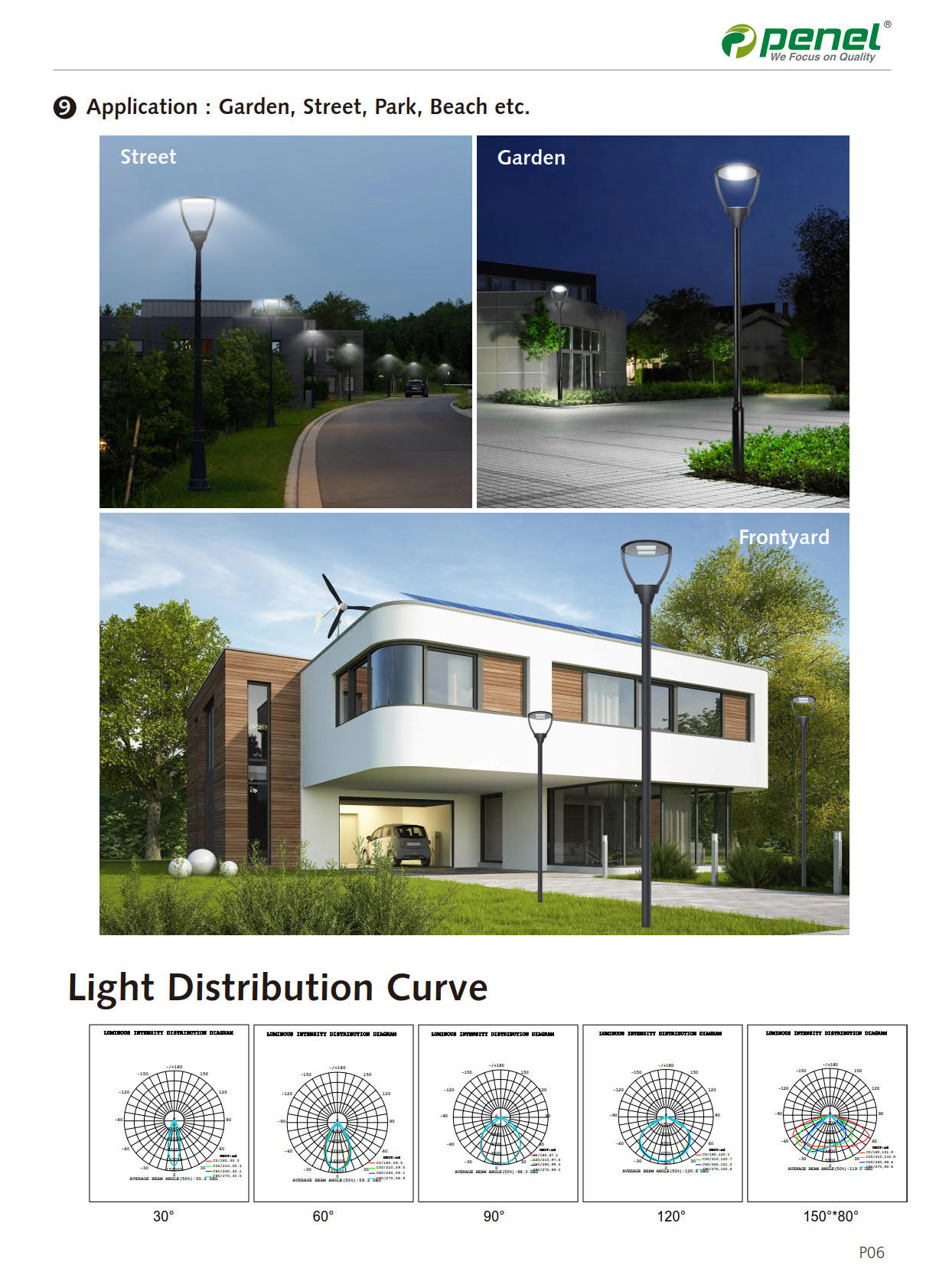 A very exquisite and elegant led garden light with 150lm/w (in average) high lumen efficiency, IP65 waterproof , 30- 200watt available, 5 years warranty, with 5mm thick tempered glass cover, perfect corrosion proof.  To fit 60-76mm diameter poles, with 30/60/90/120/150*80 degrees beam angles optional, perfectly illuminate the streets, gardens, parks etc,  and its graceful shape is just part of the landscape.