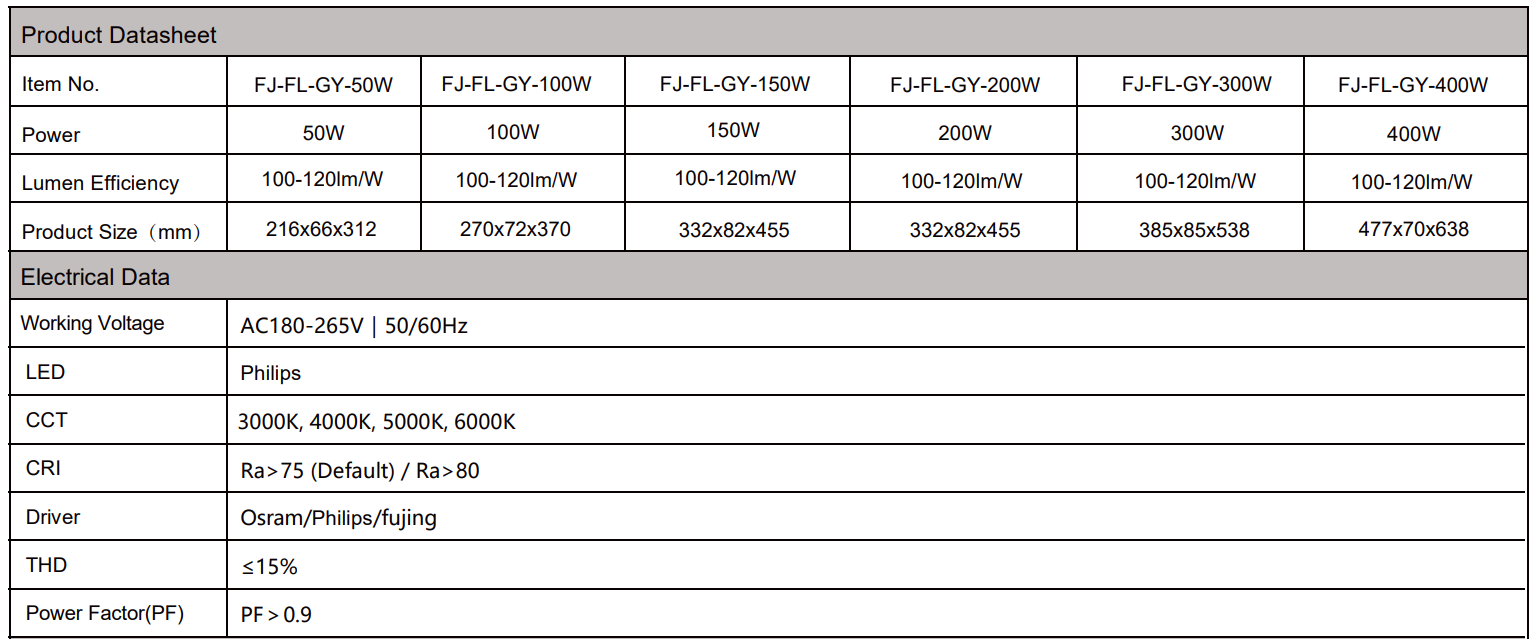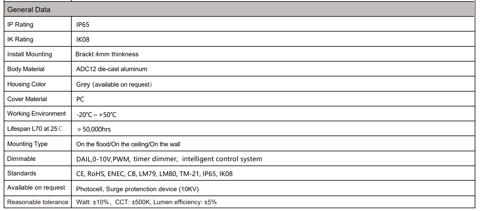 Fujing Flood features multiple wattages and optics which provide the abil ity to accommodate various mounting heights and methods.