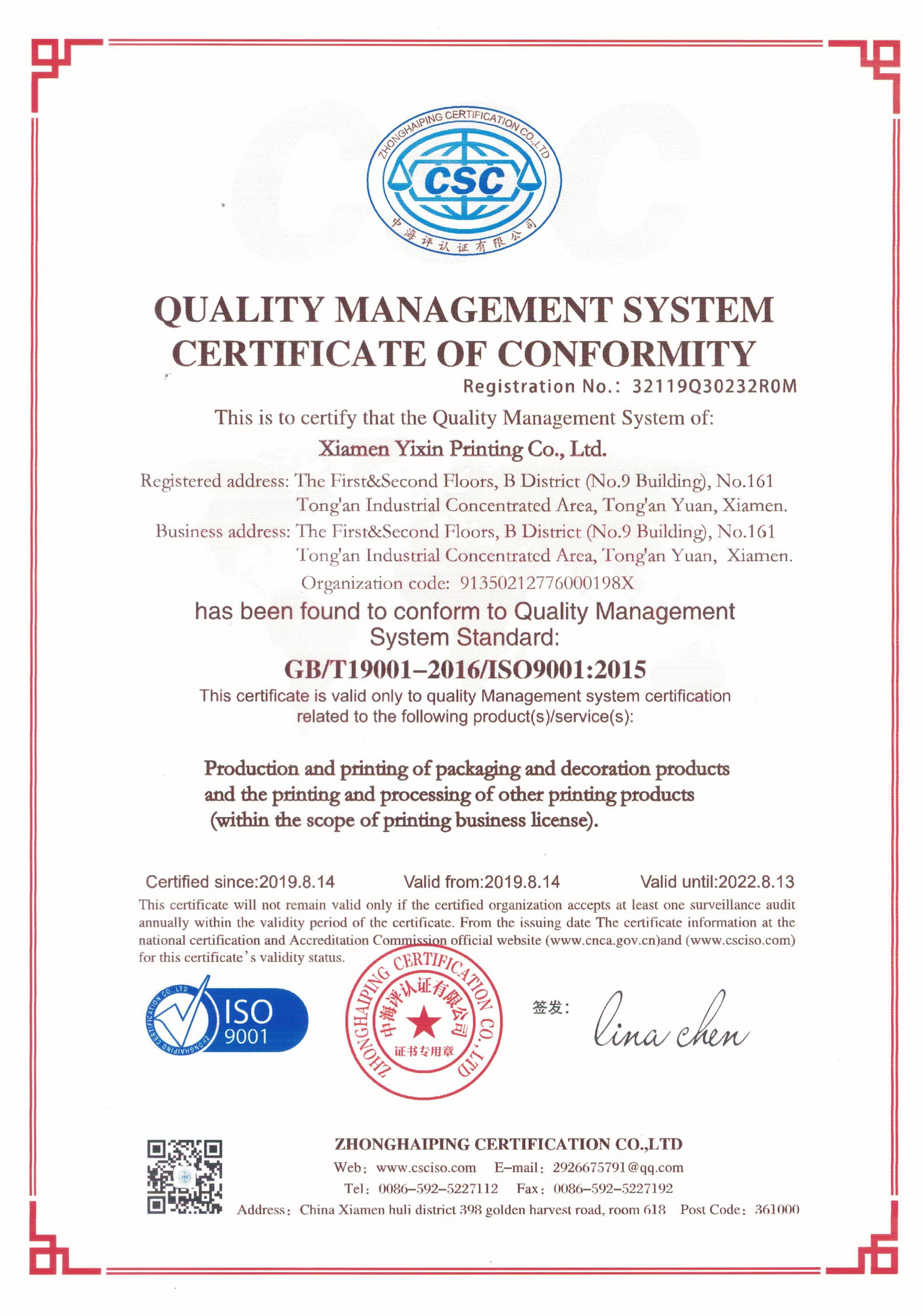 Xiamen Yixin Printing Co.,Ltd.