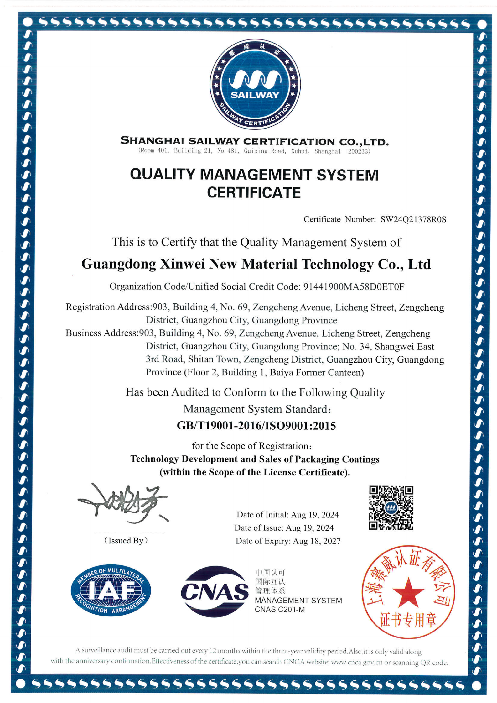 QUALITY MANAGEMENT SYSTEM CERTIFICATE