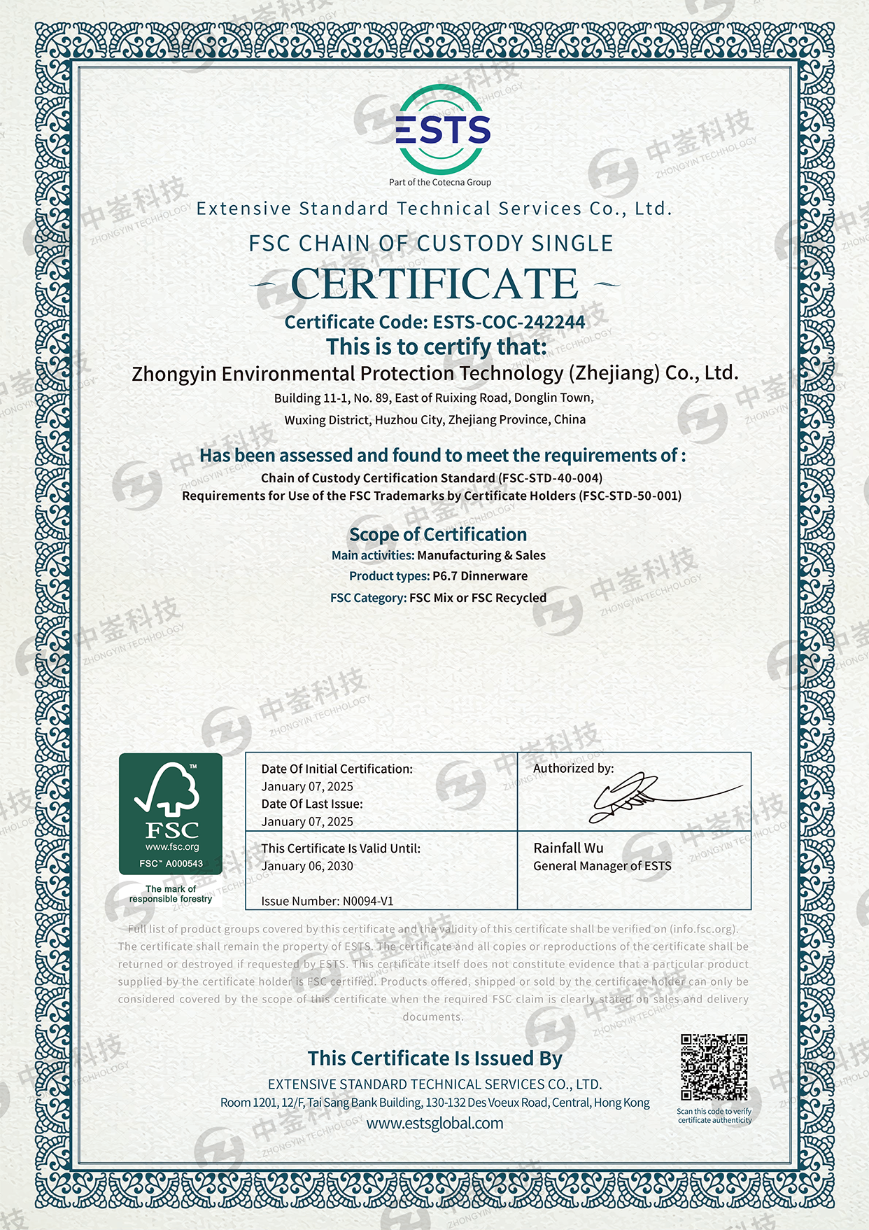 Zhongyin Environmental Protection Technology (Zhejiang) Co., Ltd.