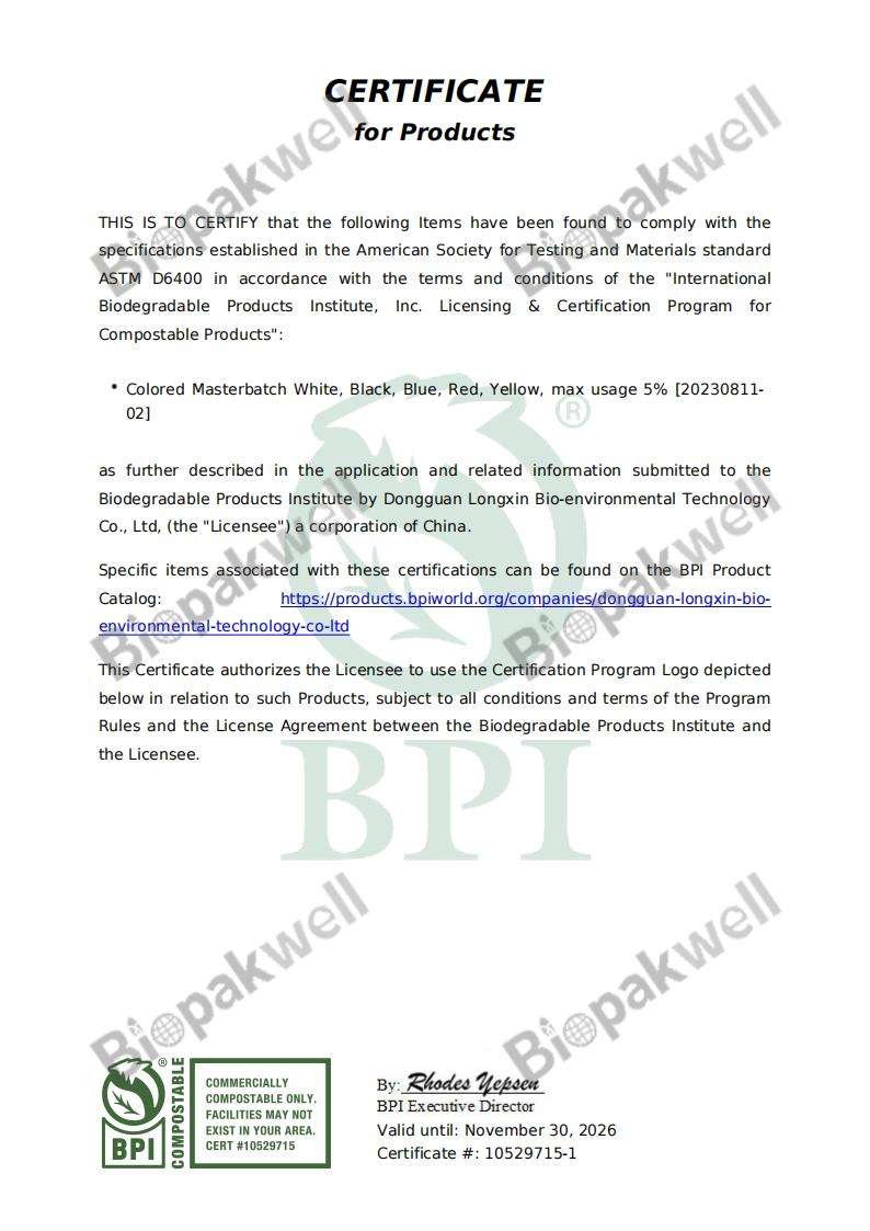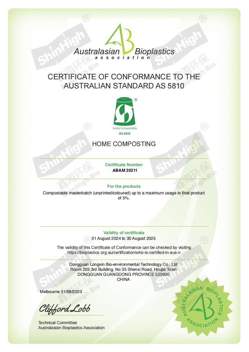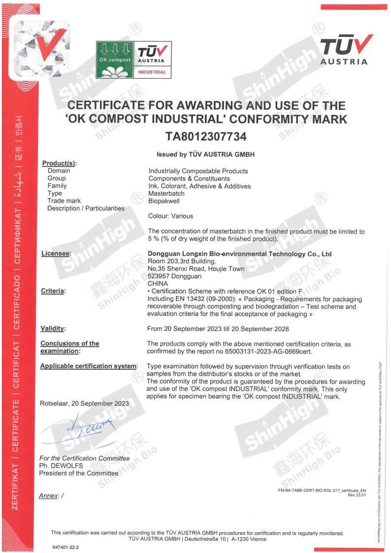 - Internationally Certified Quality: Our masterbatch is rigorously tested and certified by leading global authorities, guaranteeing its compostability and performance.