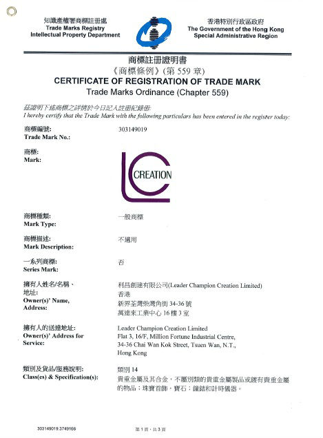 CERTIFICATE OF REGISTRATION - TRADE MARKS ORDINANCE (Chapter 559)