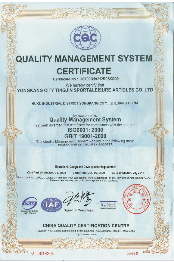 Yongkang Tingjin Sports Leisure Products Co., Ltd.