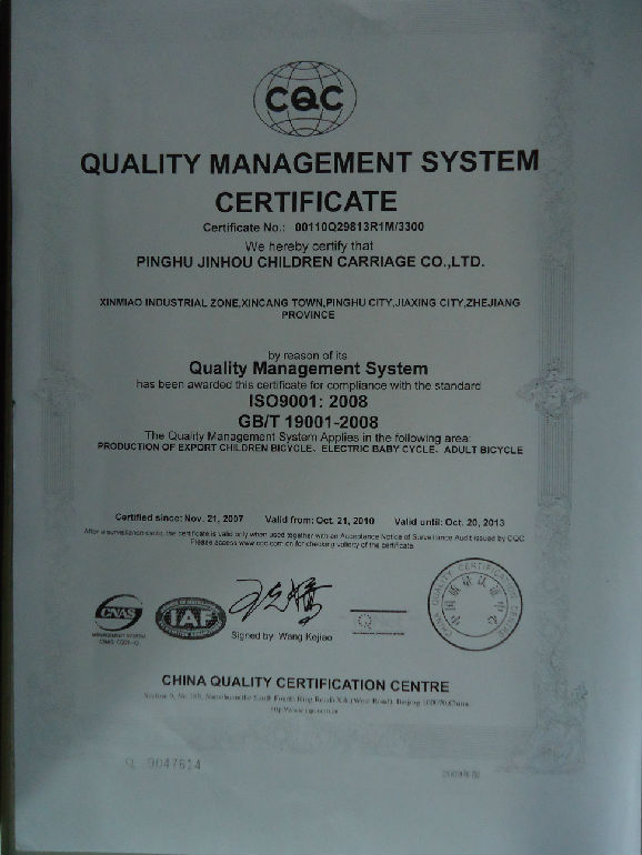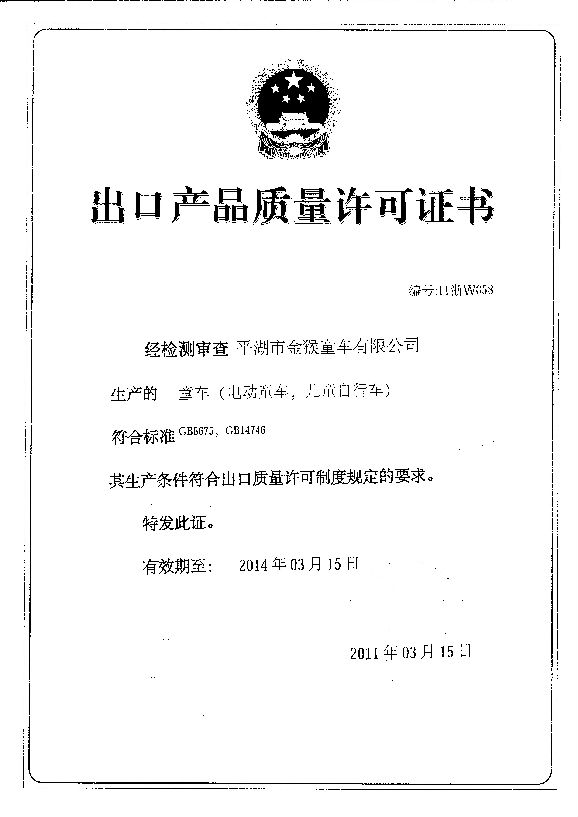 CHILDREN BICYCLE&CAR EXPORT CERTIFICATION
