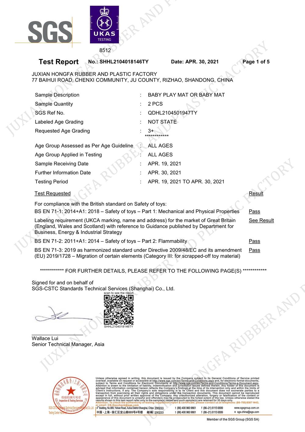 Established in 1994, JUXIAN HONGFA RUBBER AND PLASTIC FACTORY is a professional manufacturer of Mats for Babies and Children.