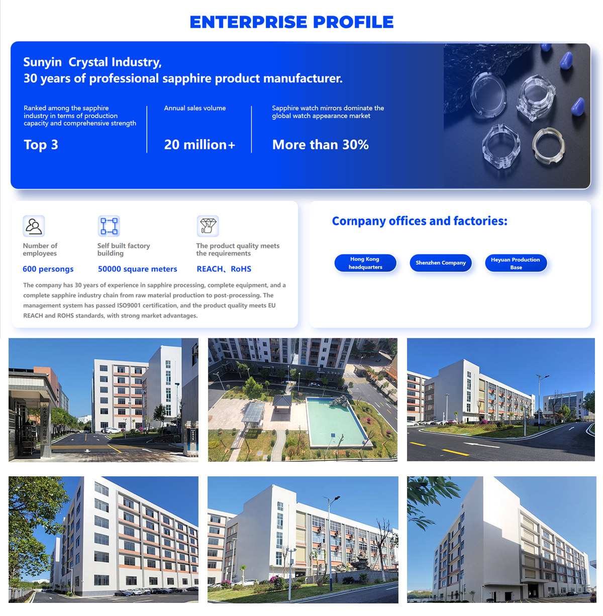 Sun Yin Crystal Ind. Co., Ltd was established in 1994 and managing by Hong Kong officer. We have over 30 years experiences about Sapphire's processed. The scale of production capacity and the comprehensive strength of Sun Yin Crystal who is the top three in Sapphire industry in China.