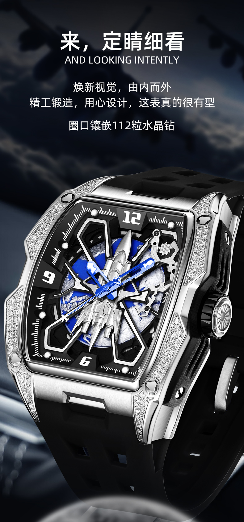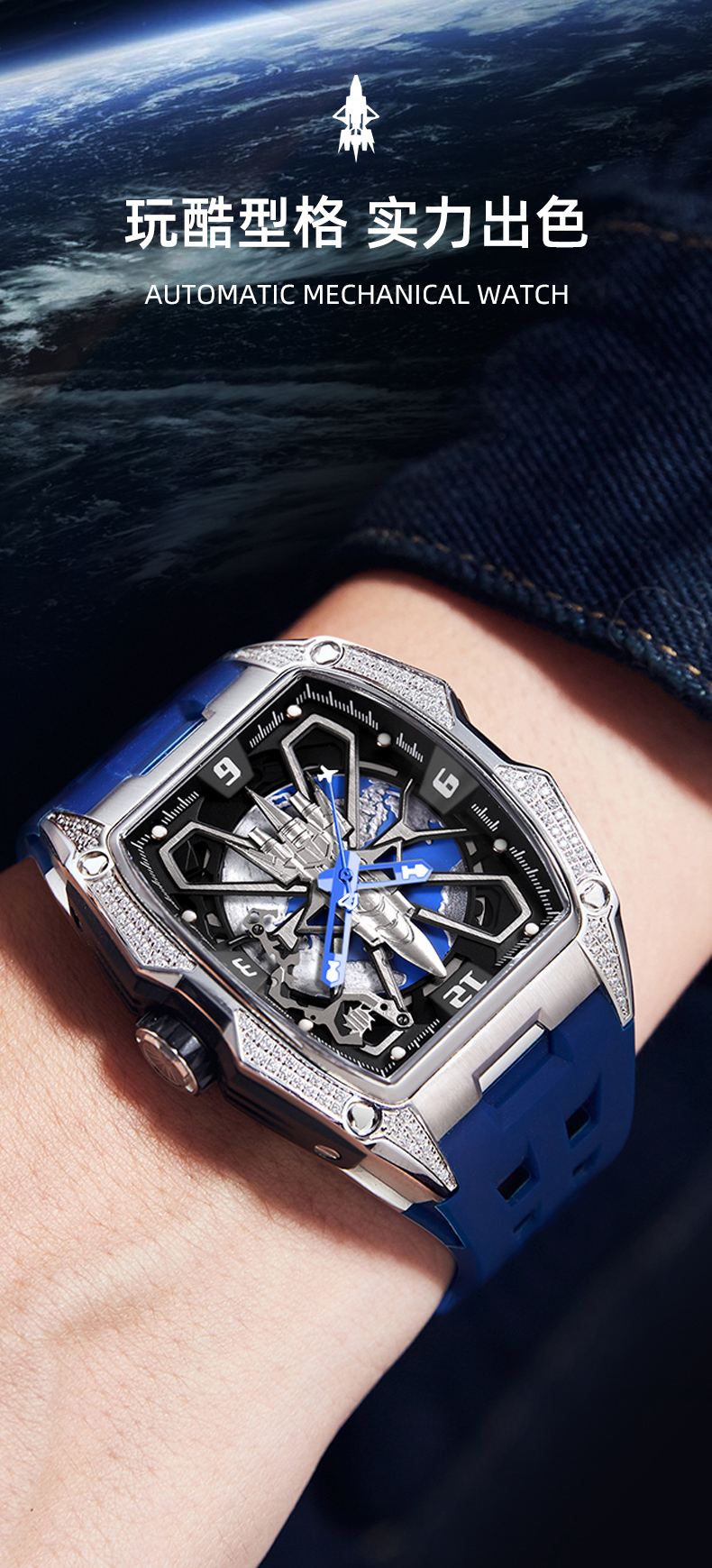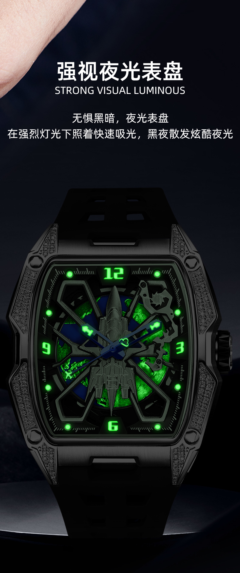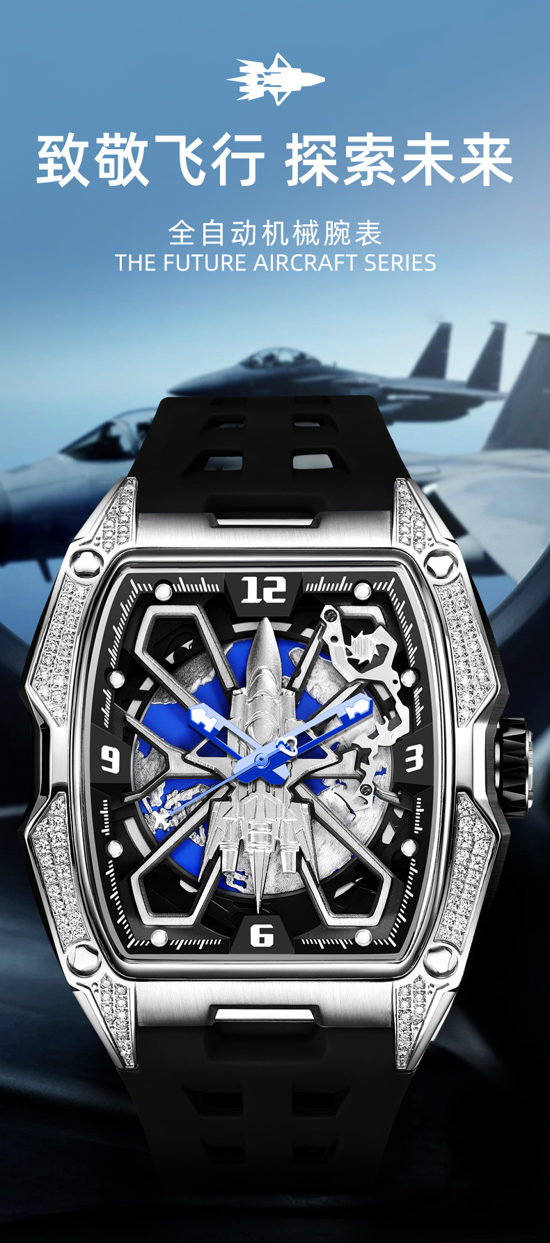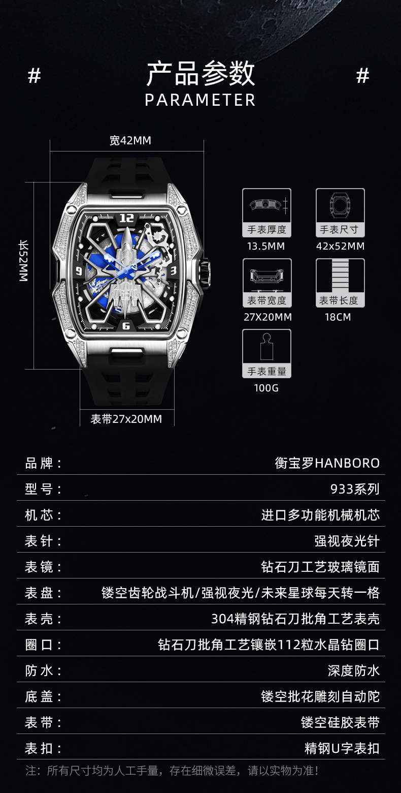 HANBORO Fighter Series Men's Automatic Mechanical Watch Luminous Waterproof Trend Watch 933-2