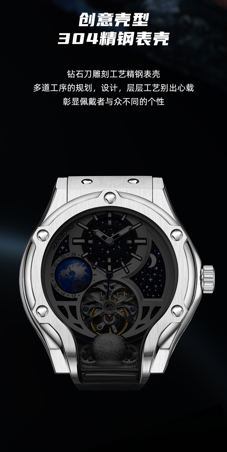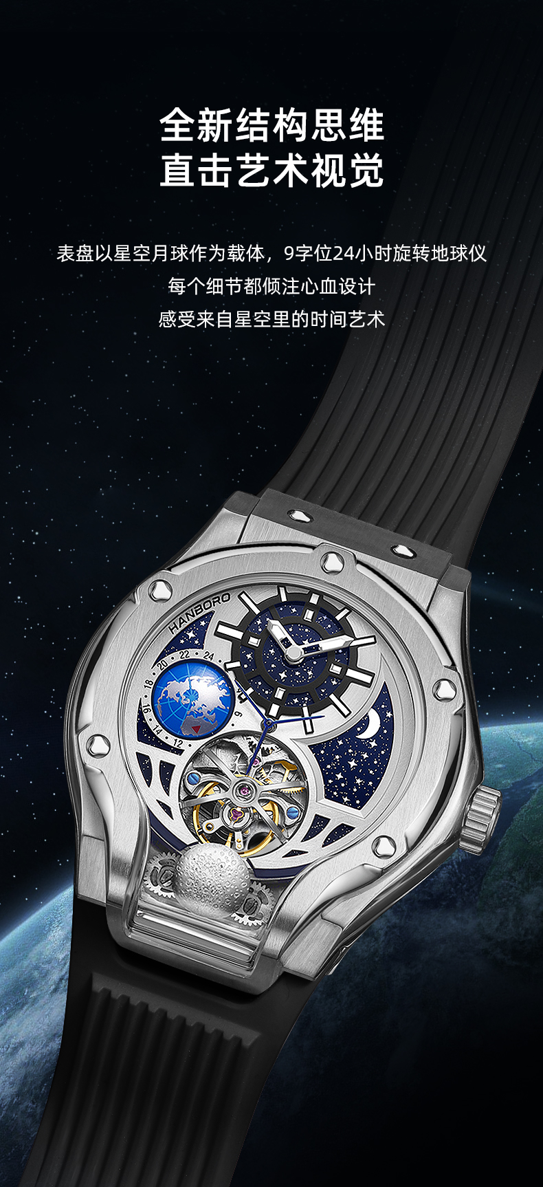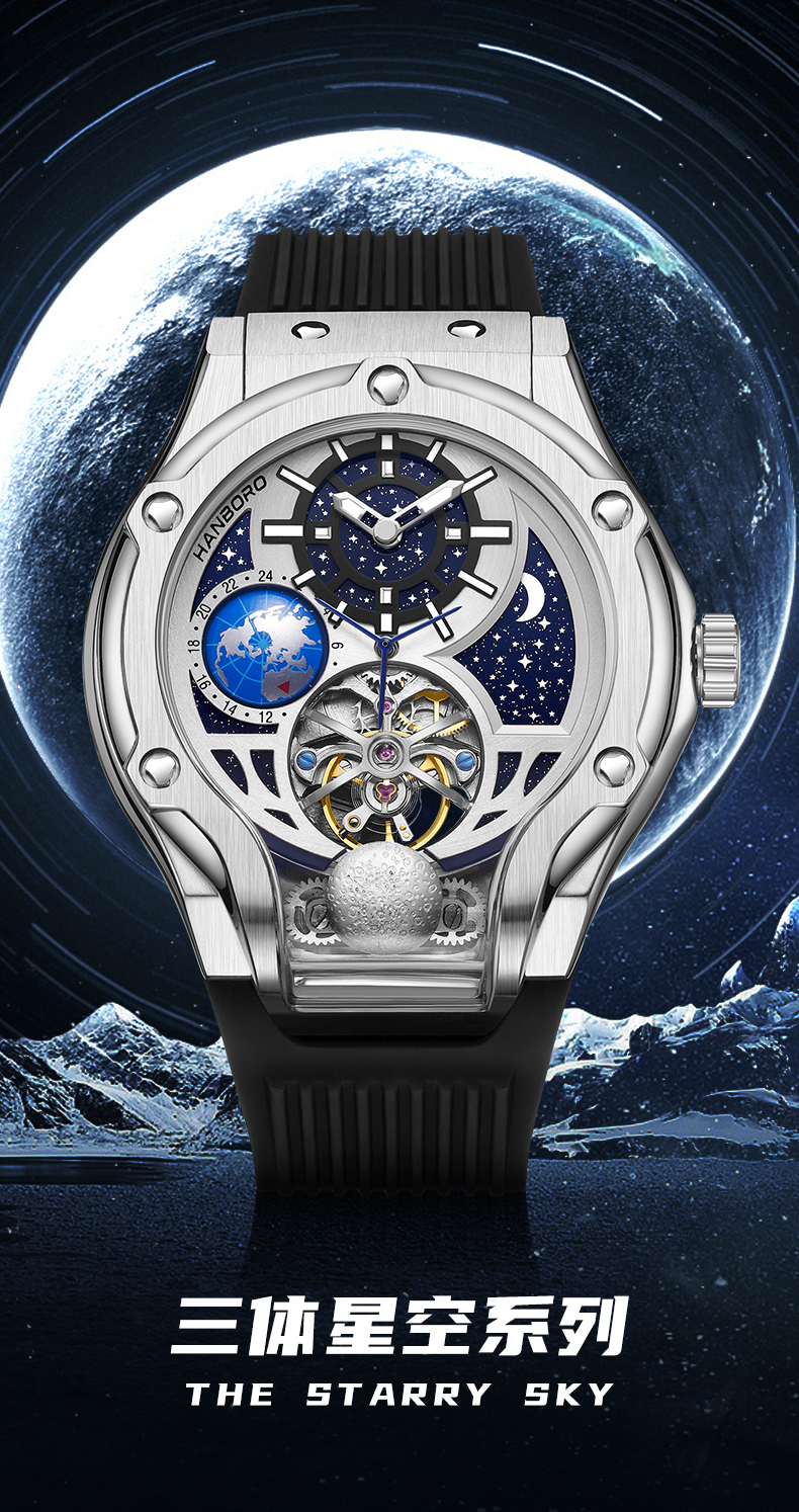 HANBORO Three Body Starry Sky Series Men's Fully Automatic Mechanical Watch Hollow out Watch 980-1