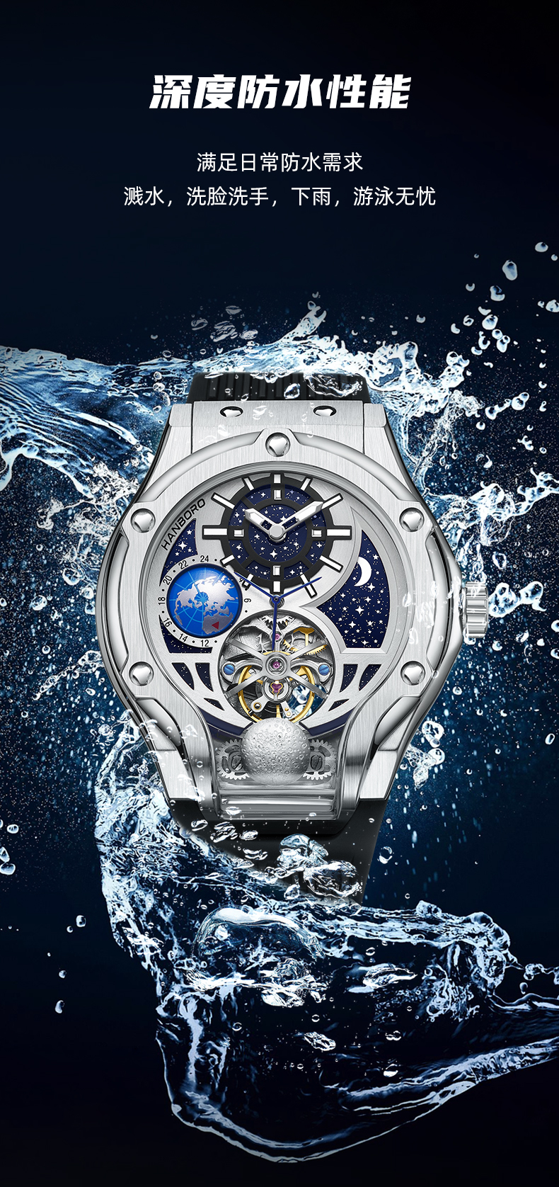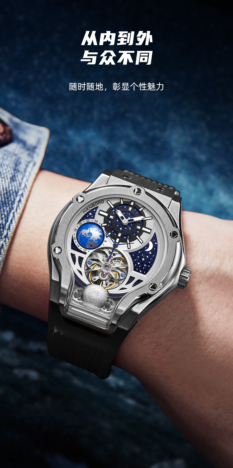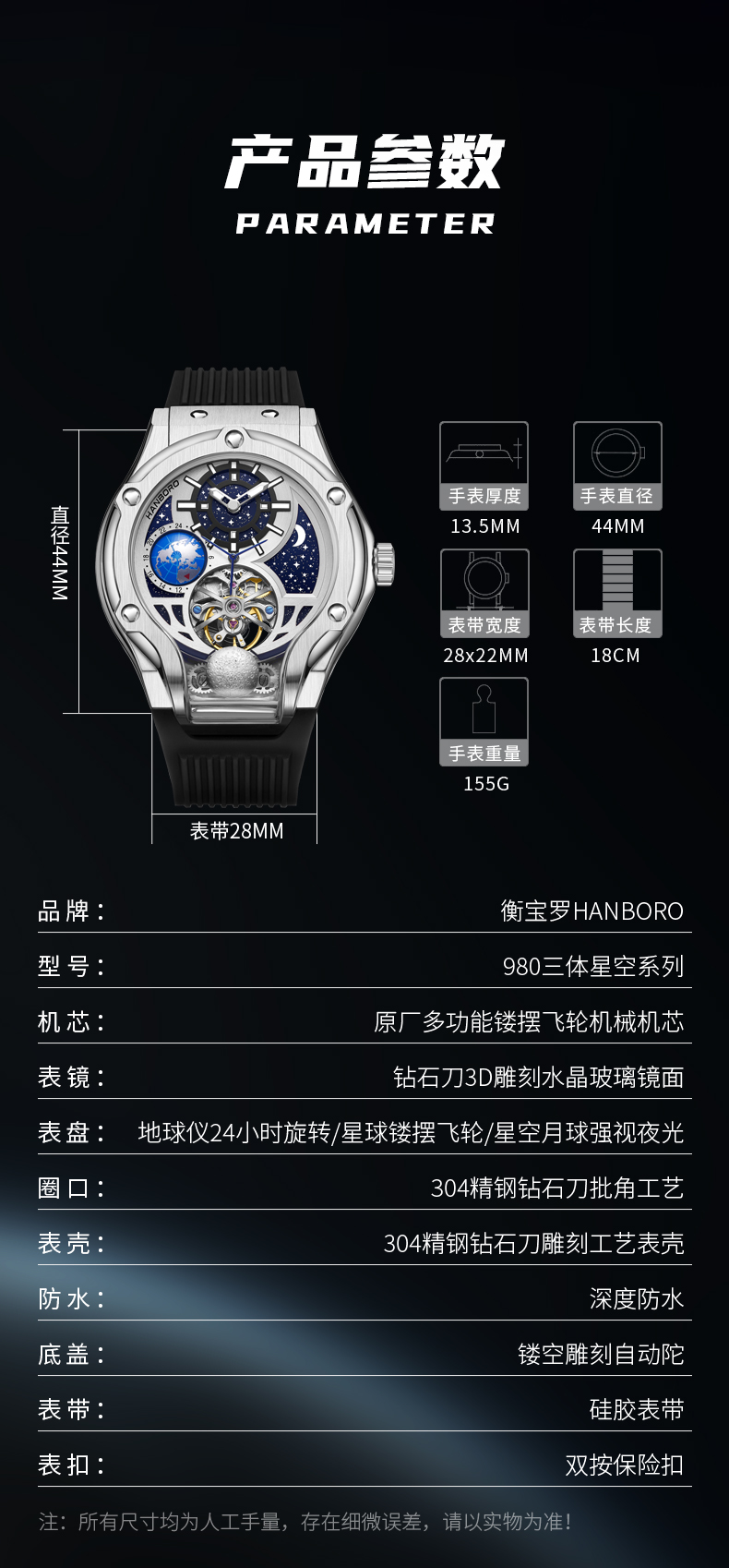 HANBORO Three Body Starry Sky Series Men's Fully Automatic Mechanical Watch Hollow out Watch 980-1